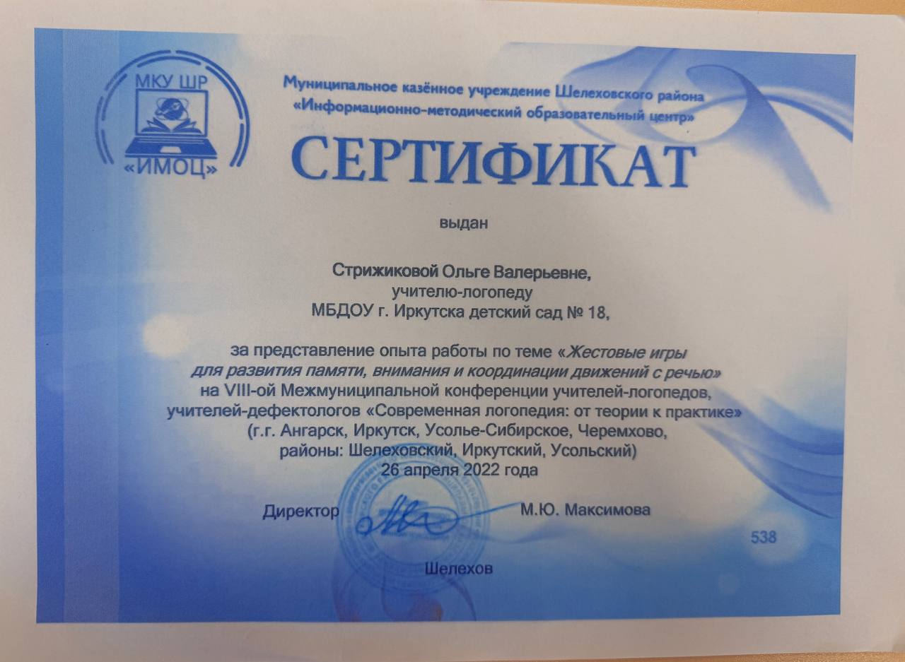 «Жестовые игры для развития памяти, внимания и координации движений с речью» (конференция «Современная логопедия: от теории к практике») — 2022